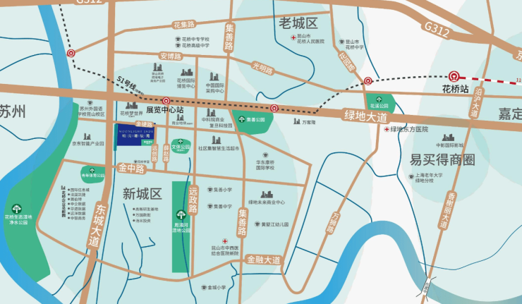 自驾路网:紧邻东城大道、京沪高速(花桥出入口约3公里),10分钟内接入沪宁高速、312国道,驾车至上海虹桥、嘉定、安亭仅需15-20分钟,通勤效率远超传统郊区盘