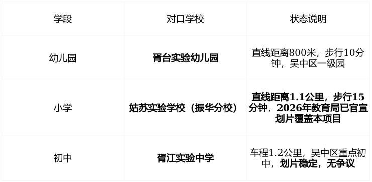 ✅ 关键提示 : 小学已明确划片 ,是苏州主城少有的“ 现房+学区确认+低密+地铁 ”四重保障项目,家长无需焦虑政策变动。