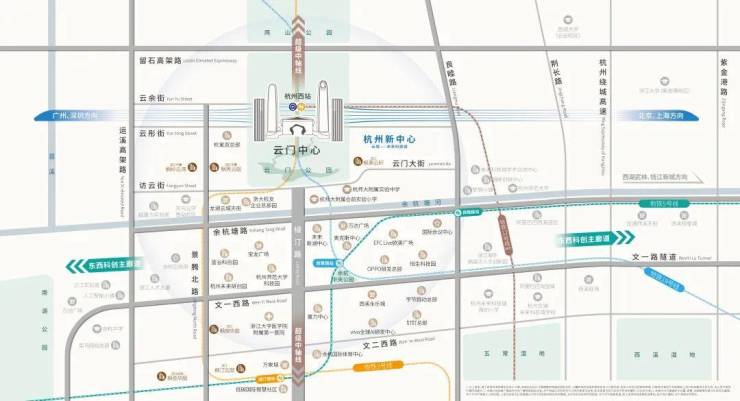 • 交通:杭州西站上盖综合体,地铁3、19、12(在建)号线,运溪高架,留石高架,文一西路快速路,绿汀路,良睦路等