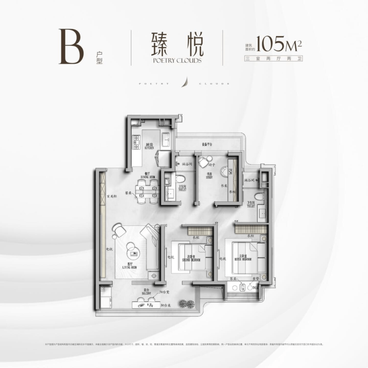 105㎡ 27,000元/㎡ 258万–275万元 约76% 三房两厅两卫,主卧带步入式衣帽间,厨房预留洗碗机位,去化最快
