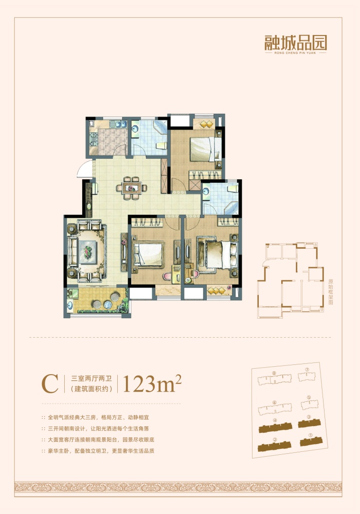 主力户型 :建面约 89–125㎡ ,涵盖三居与四居,满足刚需及刚改需求