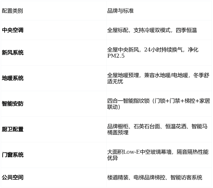项目为精装现房交付,精装标准达2300元/㎡,远超市场平均水平,核心配置如下: