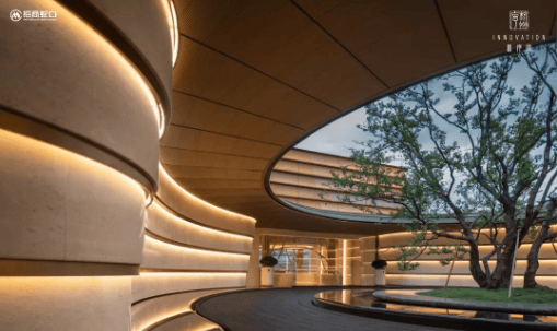 会所设计:2800㎡“序Lounge”会所涵盖恒温泳池、SPA馆、私宴厅、红酒雪茄吧等,并设置金石文化展陈区;