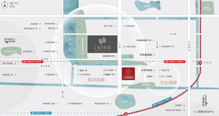 自驾便捷 :紧邻人民北路、北京西路主干道,15min直达太仓万达商圈;接驳沈海高速(G15),30min至上海嘉定、昆山花桥。