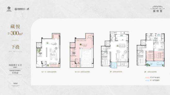下叠300㎡(经拓展改造后使用面积约430㎡)