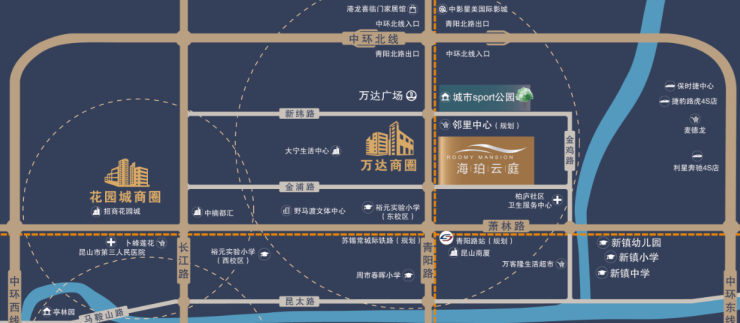 自驾 :紧邻青阳北路(双向六车道)、萧林路,2公里内接入中环快速路,15min直达昆山核心商圈。