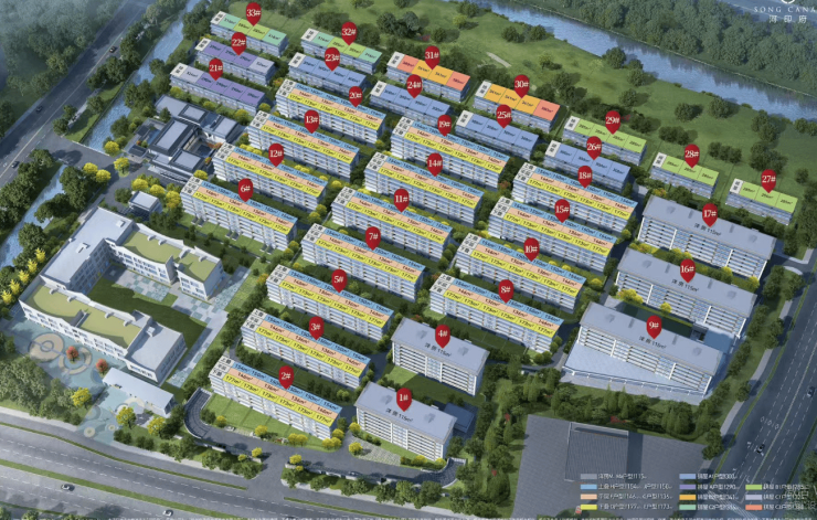 绿化率:高达35%,内部打造“一轴三园九巷”宋风园林