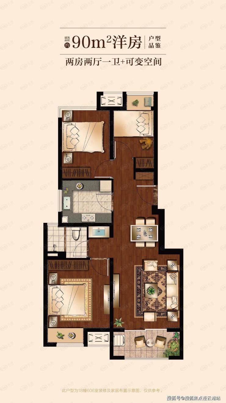 90㎡三居室:2+1室两厅一卫,全明格局,现房总价125万起(送车位)