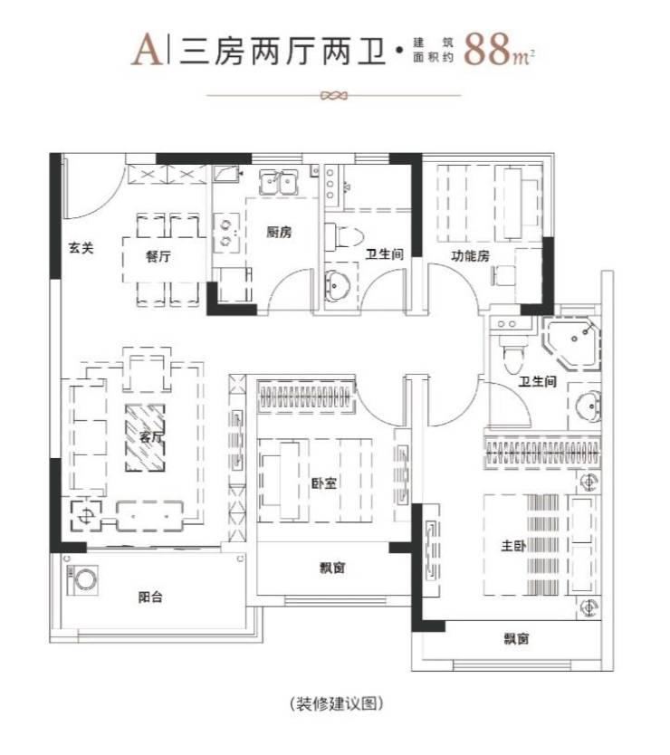 得房率80%–83%88㎡户型实际使用面积接近普通95㎡高层