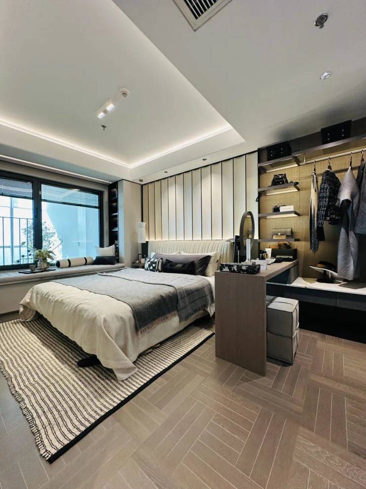 通过空间层次、材料触觉、贴心细节实现“回家即度假”的酒店式治愈感,每一处细节都精雕细琢。同时在架空层预留私人庭院、健身房等配套设施的位置和条件,为居住者打造专属的休闲空间,满足其对品质生活的追求。摒弃一味堆砌奢华的浮夸,营造细腻的归属感与克制的精致感,以精致、高雅、个性化的生活方式,诠释着对生活的热爱与尊重。