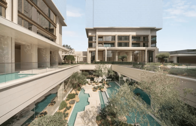 社区规划:容积率仅2.0,绿化率35%,打造约2000㎡下沉式庭院会所,配备恒温泳池、健身房、私宴厅、儿童游乐区等,实现“度假式”社区生活。
