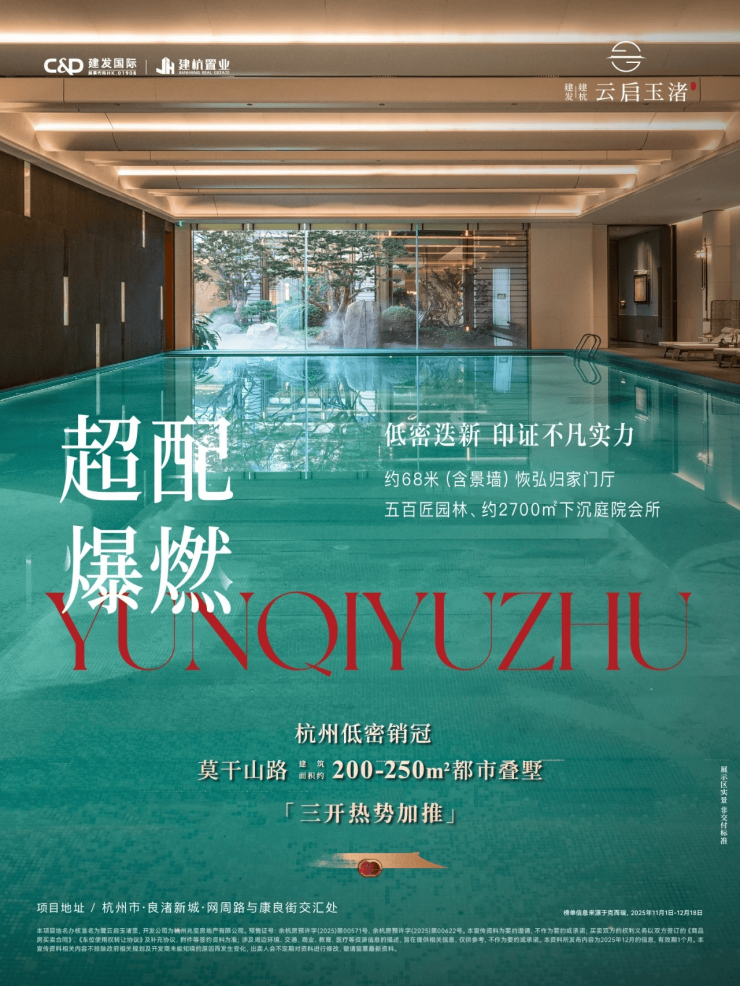 建发建杭·云启玉渚是位于杭州余杭区良渚新城核心的一处稀缺纯低密墅区,由建发集团与建杭置业双国企联袂打造,主打“有天有地有庭院”的改善型叠墅与排屋产品,容积率仅1.2,是当前大城西主城范围内罕见的低密人居标杆。