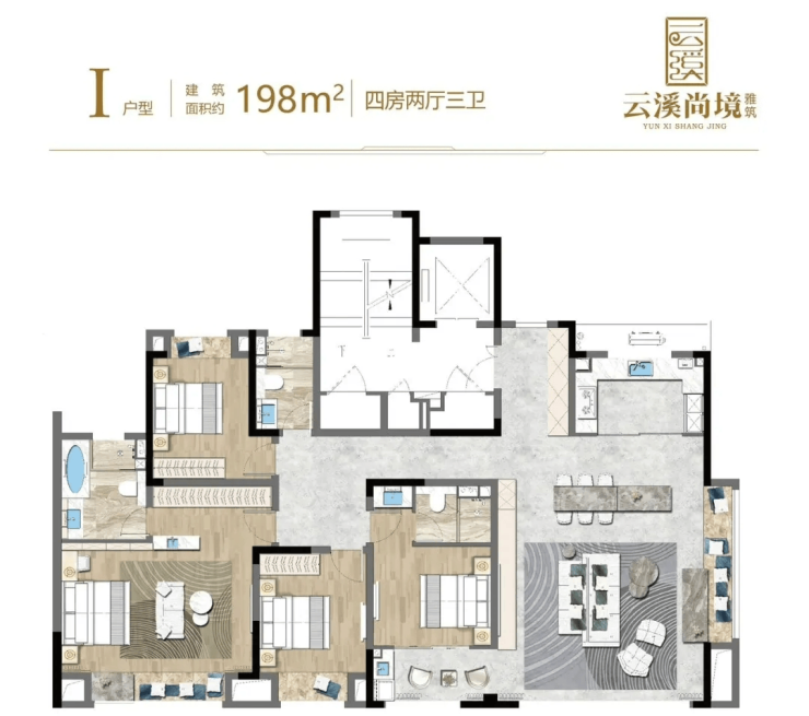 建面179-208㎡奢阔四居:总价300-380万,分布于7#、5#、4#、3#楼。近15.7米超大面宽,配置中西双厨设计,双套房和3个卫生间,满足三代同堂居住需求