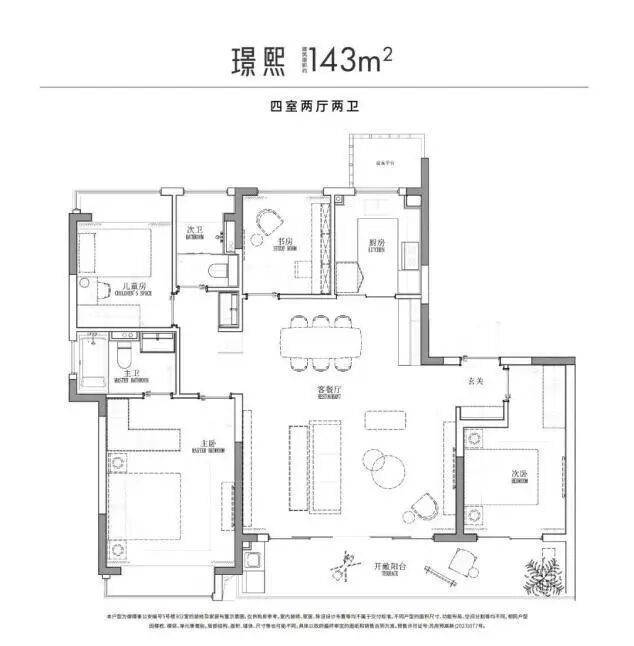 134㎡四房实际使用面积约106㎡,布局紧凑高效,适合二胎或三代同堂家庭 ;
