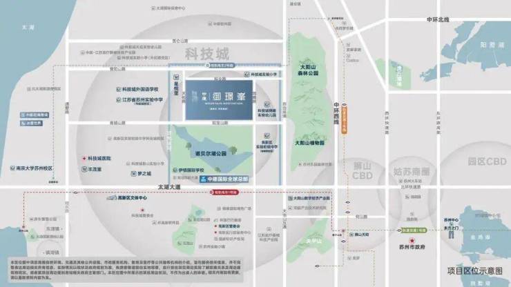 自驾路网 : 2分钟上科灵路 , 5分钟接入中环西线 , 10分钟达狮山CBD、金鸡湖、园区 , 15分钟通达苏州北站、高铁站 。