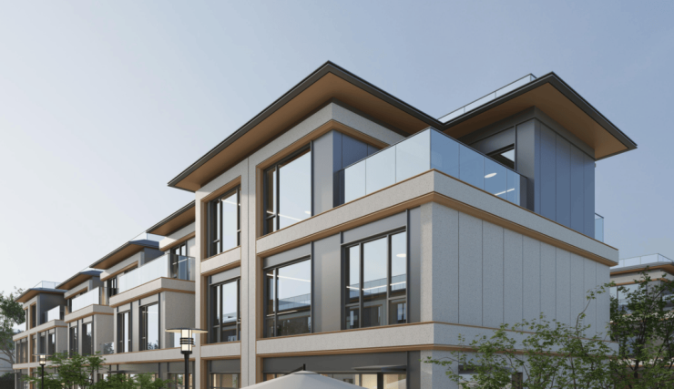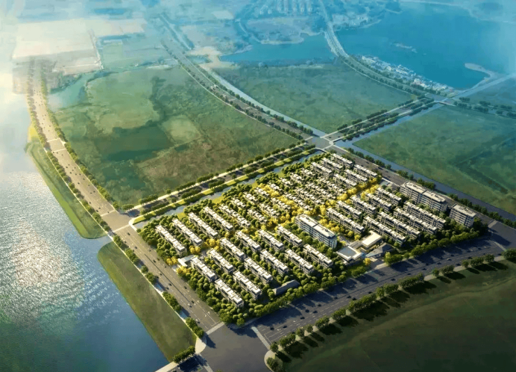 纯墅区规划,联排别墅采用玻璃立面,融合现代美学与苏式园林