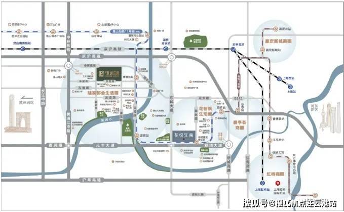 地面交通:周边有三横三纵立体交通路网,临近昆山中环南线陆家出口以及城市快速路绿地大道,可通达城北、城东、城西等主要城市区域,距离京沪高速花桥出口也较近。
