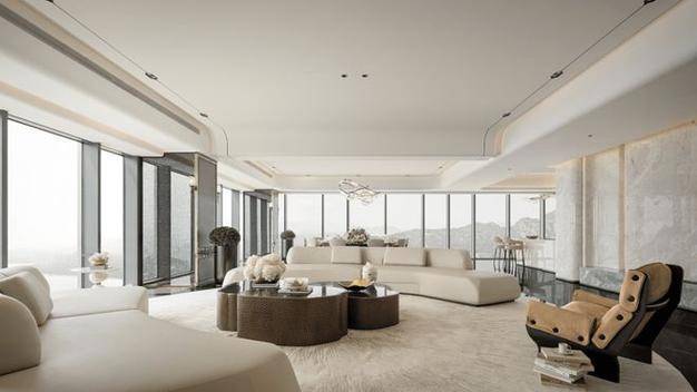 交付标准:中央空调、新风、地暖三大件+全屋精装带厨卫等