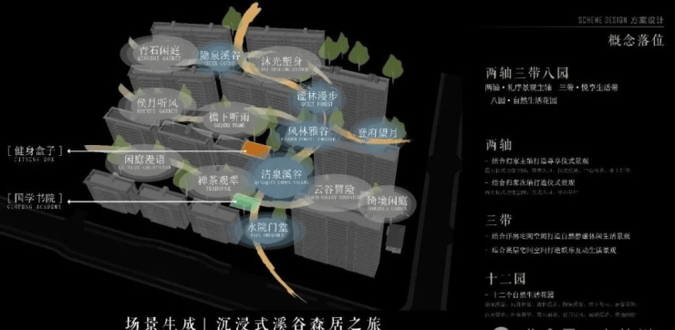 项目以江南古典园林为蓝本,萃取东方庭园的造园工法,融合国风宋韵之雅趣,匠筑“两轴三带八园十二景”的景观格局,为昆山层峯人士敬献东方臻品。