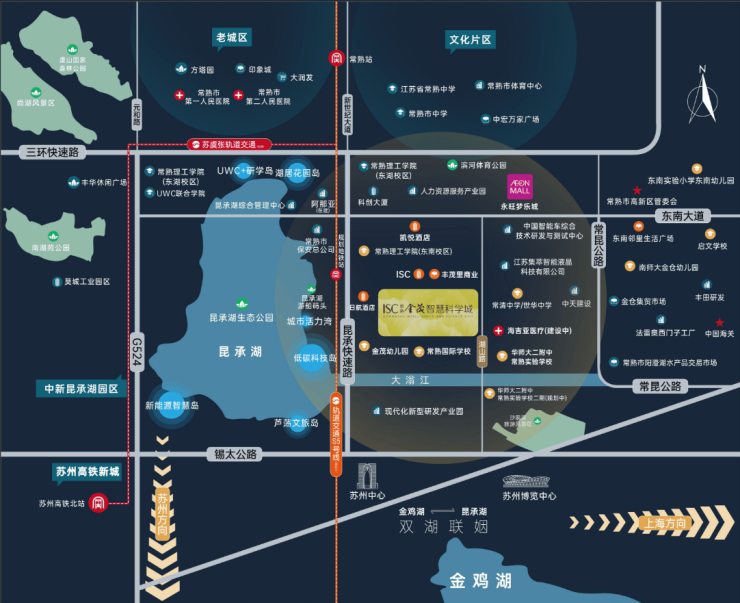 🌳 生态与医疗:18.4平方公里昆承湖,是金茂的王牌