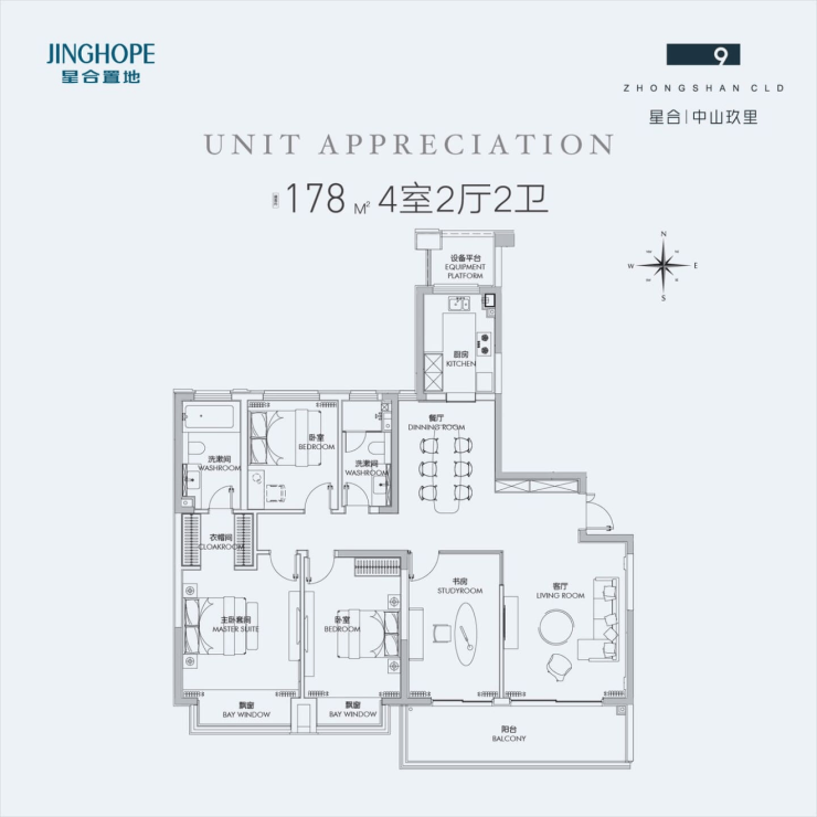 178㎡ 480–481万元 27,000元/㎡ 4室2厅2卫,双阳台,主卧套房,独立衣帽间 高端改善标杆,空间利用率极高