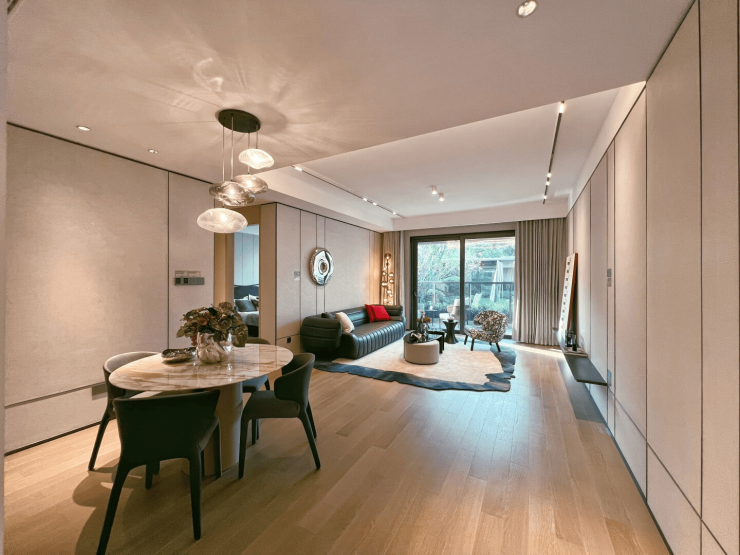 精装交付,无毛坯选项,中央空调+新风+地暖为标配,无隐藏收费。