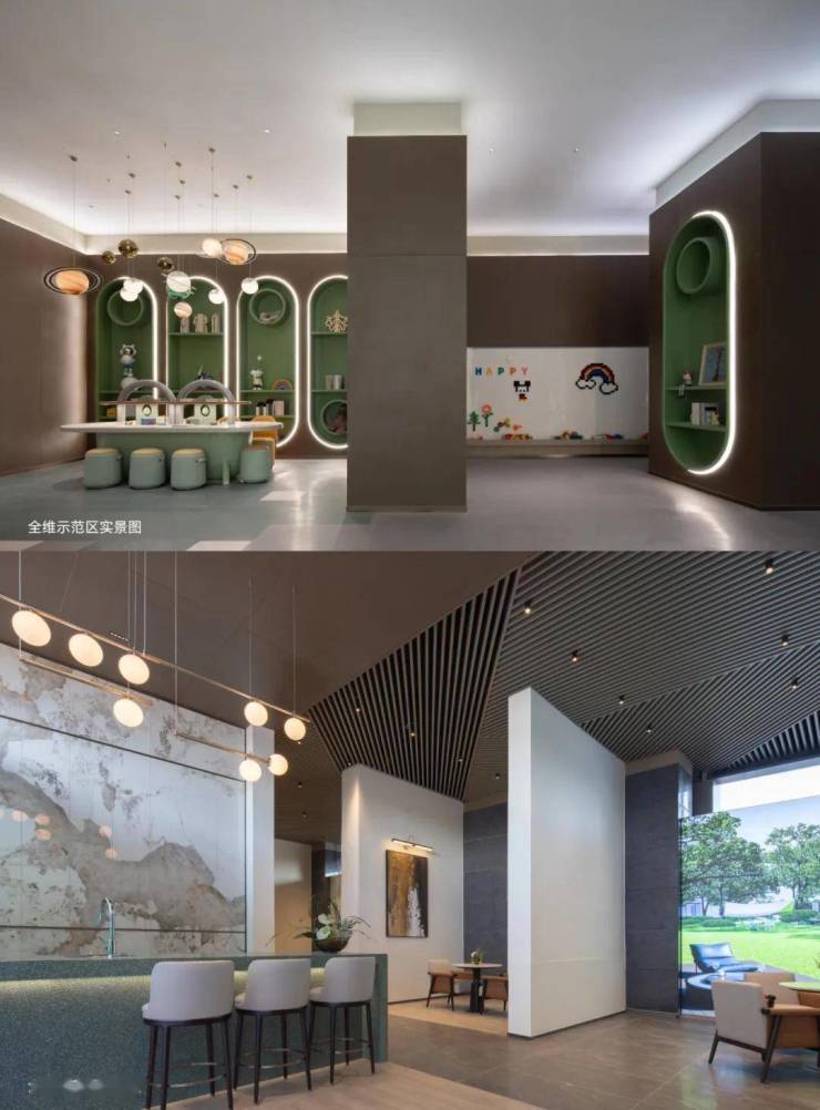 绿城凤鸣江南售楼处电话:400 808 3612✔✔✔☎约3.6-4.8米层高的全龄架空层,5大混龄场景主题设计,健身运动、talking bar、儿童游乐、红叶空间等多主题情绪盒子,提供邻里生活的温暖交流平台;
