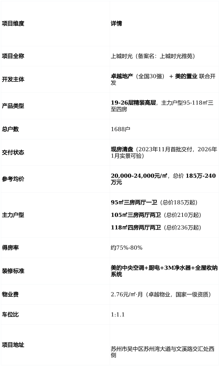 💡 现状解读 :上城时光是苏州城南少有的“现房+双轨交+名校”组合盘,2026年进入清盘阶段,剩余房源以景观优选户为主,无期房风险,适合追求确定性、高性价比的刚需改善家庭。