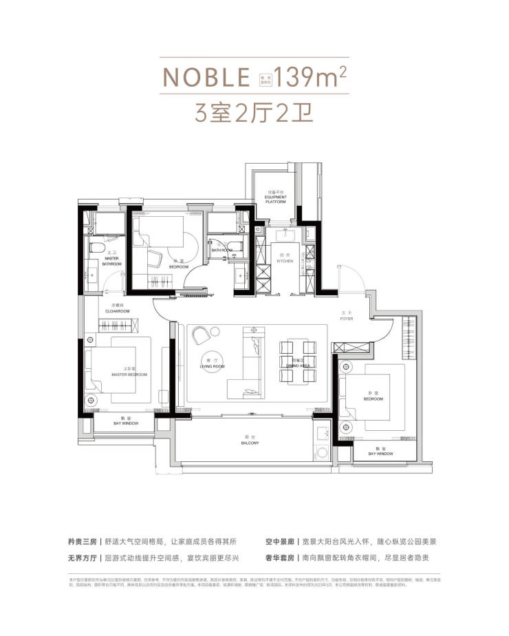 139㎡ 三室两厅两卫 LDK一体化,得房率79% 约380-504万