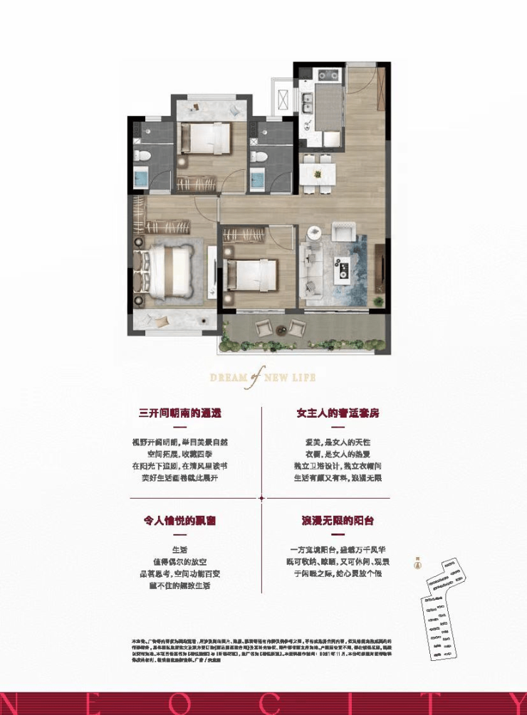 C-3户型 三室二厅二卫 97㎡