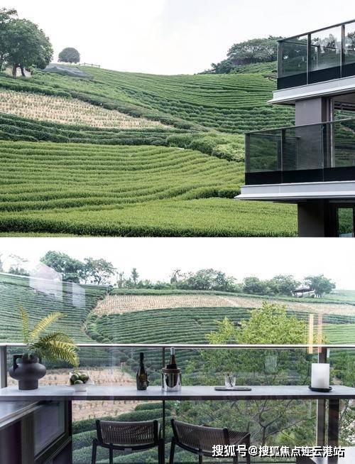 建筑风格:融合龙坞茶山自然元素,坡顶瓦片结合金属钩边,营造东方意境