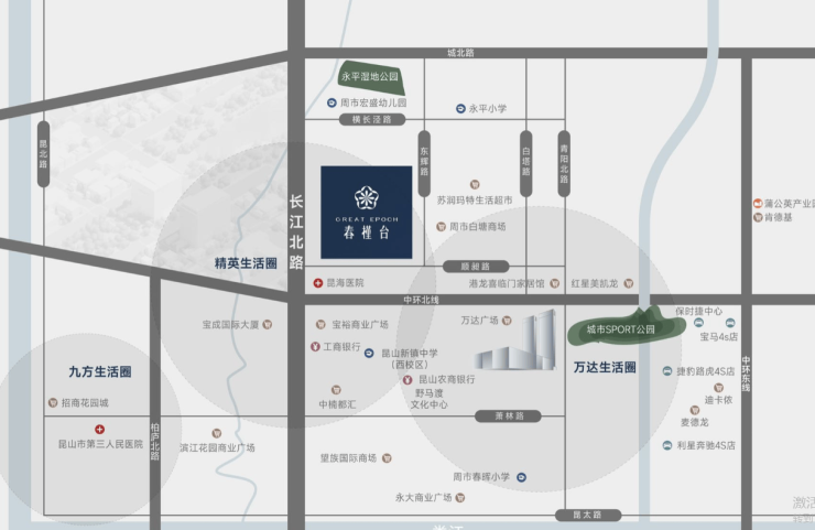 南邻中环北线(青阳路/长江路匝道),15min直达昆山主城区,30min通达上海虹桥枢纽