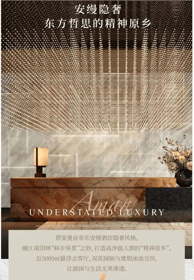 此外,项目还将借鉴曼谷奈乐安缦酒店隐奢风格,同时融江南园林“移步异景”,打造近3000㎡悬浮会客厅,双花园轴与度假泳池交织。