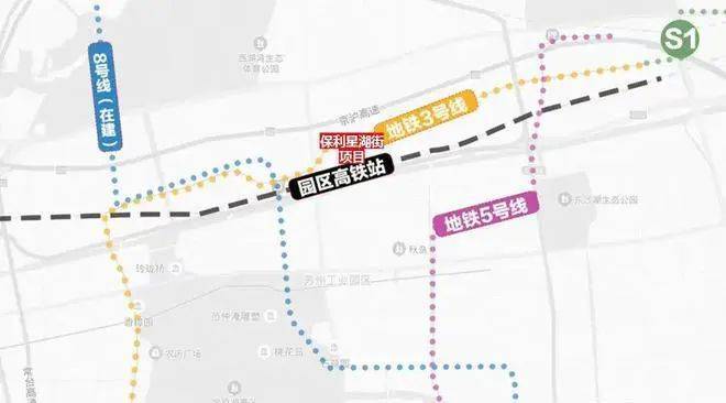 向西约1公里的园区站,约15分钟通勤上海,约1小时内到达长三角核心城市。•高铁:已通车的沪宁城际铁路,规划中的如通苏湖城际铁路于此交汇。