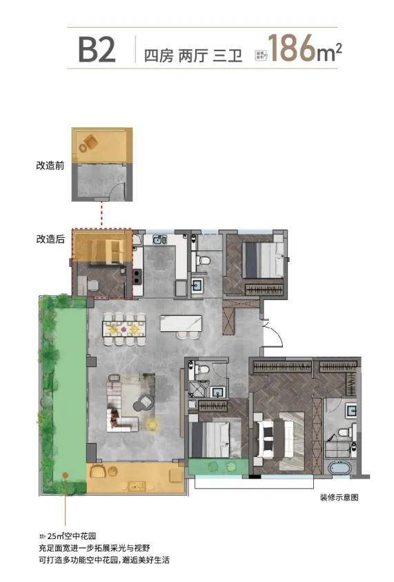 创新户型设计:92㎡户型打造"LDKG四维交互系统",约9㎡空中庭院