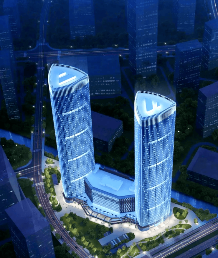建筑高度:双塔249.9米,共59层,被誉为“小杭州之门”