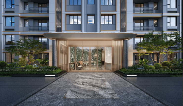 小区中央打造超大绿地与水景庭院,结合风雨连廊,营造“可游可赏、可玩可憩”的沉浸式社区环境。