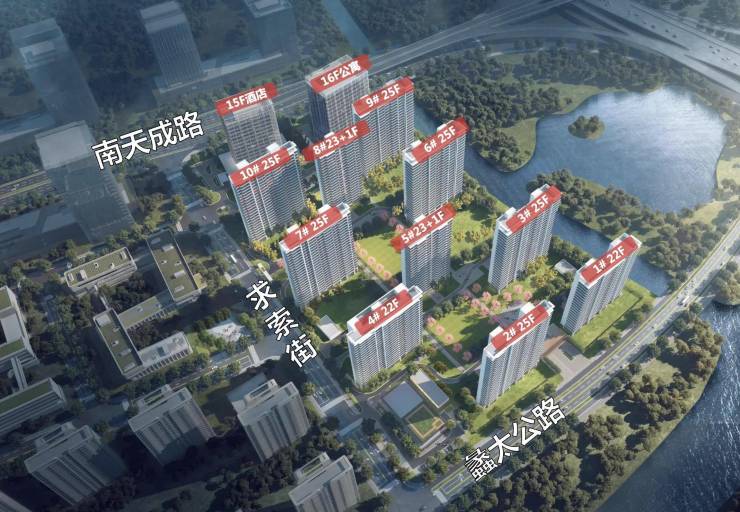 规划10栋高层住宅(22-25层)、1栋公寓及1栋酒店,共912户,容积率2.5,绿地率37%