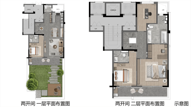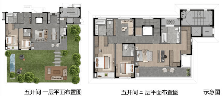 205㎡ 下叠 860 – 920 4.2万 – 4.5万 三开间布局,主卧朝南,庭院面积超100㎡,稀缺度高
