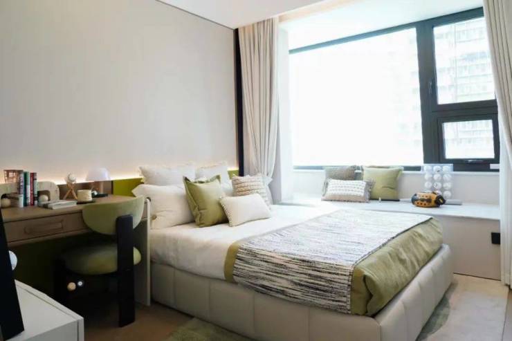 南向次卧套房设计,宽度达到3.5米,还带有大尺度飘窗,进一步延展了空间,舒适度丝毫不减。