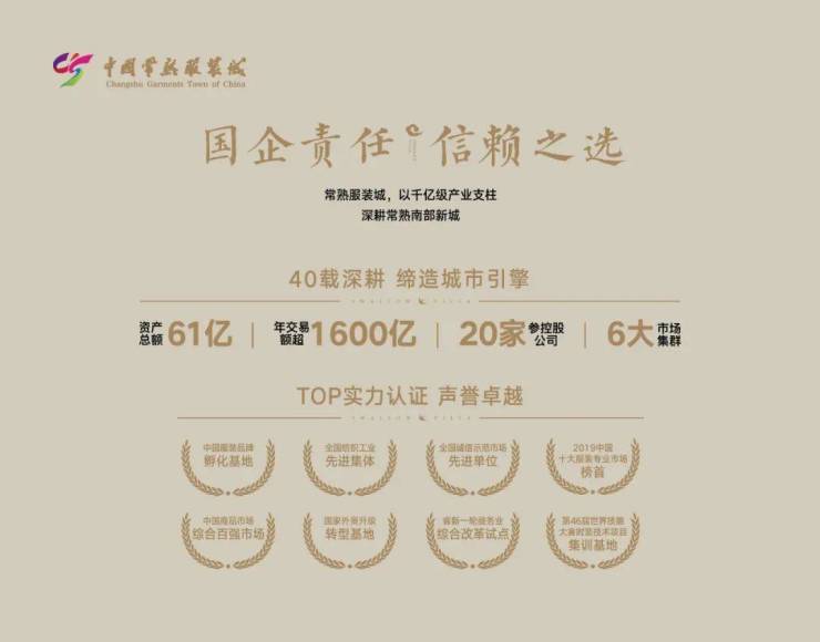 作为实力卓绝的本土国企品牌,服装城集团履迹已40年,在建设品牌市场的同时,陪伴城市共同成长繁荣,见证了常熟峥嵘发展的时光。其旗下拥有六大核心市场,分别涉及招商城、男装中心、童装中心、鞋业中心、综合市场、女装市场,形成了独具服装城集团特色的发展构架与模式,助力常熟产业高质量发展。
