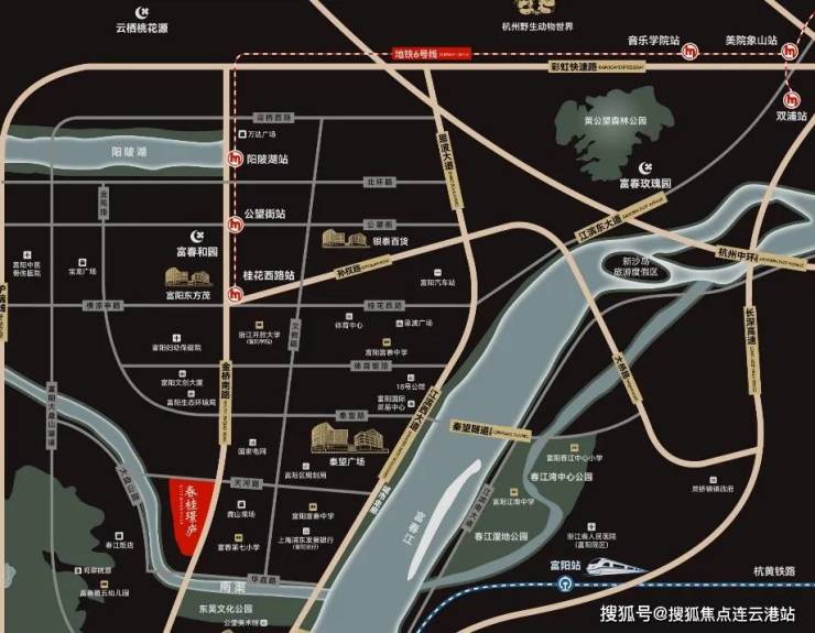 东吴文化公园旁,直线距离约700米富春江,入怀大盘山,西临城市天然河道,谧享繁华有静的都会富春山居。