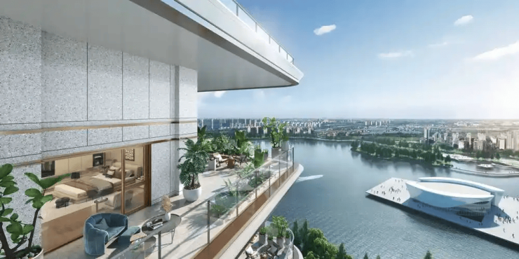 外立面采用180°-360°环幕式露台设计,突破传统四代住宅奇偶错层布局,构建“湖境—园境—院境”的立体景观空间。