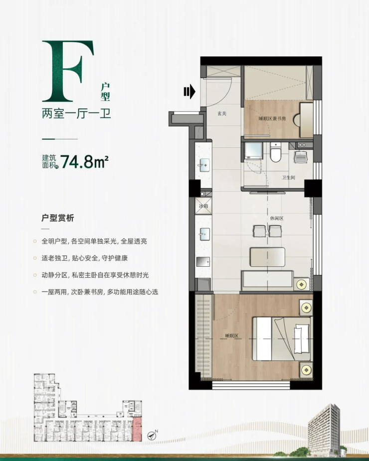 户型:主力户型为47.5-80.2㎡的一室至两室,全屋适老化装修(含地暖、新风、中央空调等)。