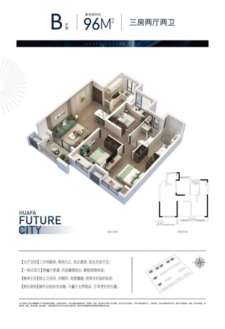 96㎡:三房两卫,总价约100万起,适合刚需家庭