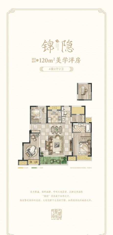 户型亮点:洋房产品120㎡四房两卫采用四叶草布局,空间利用率高;小高层95-115㎡户型采光通透