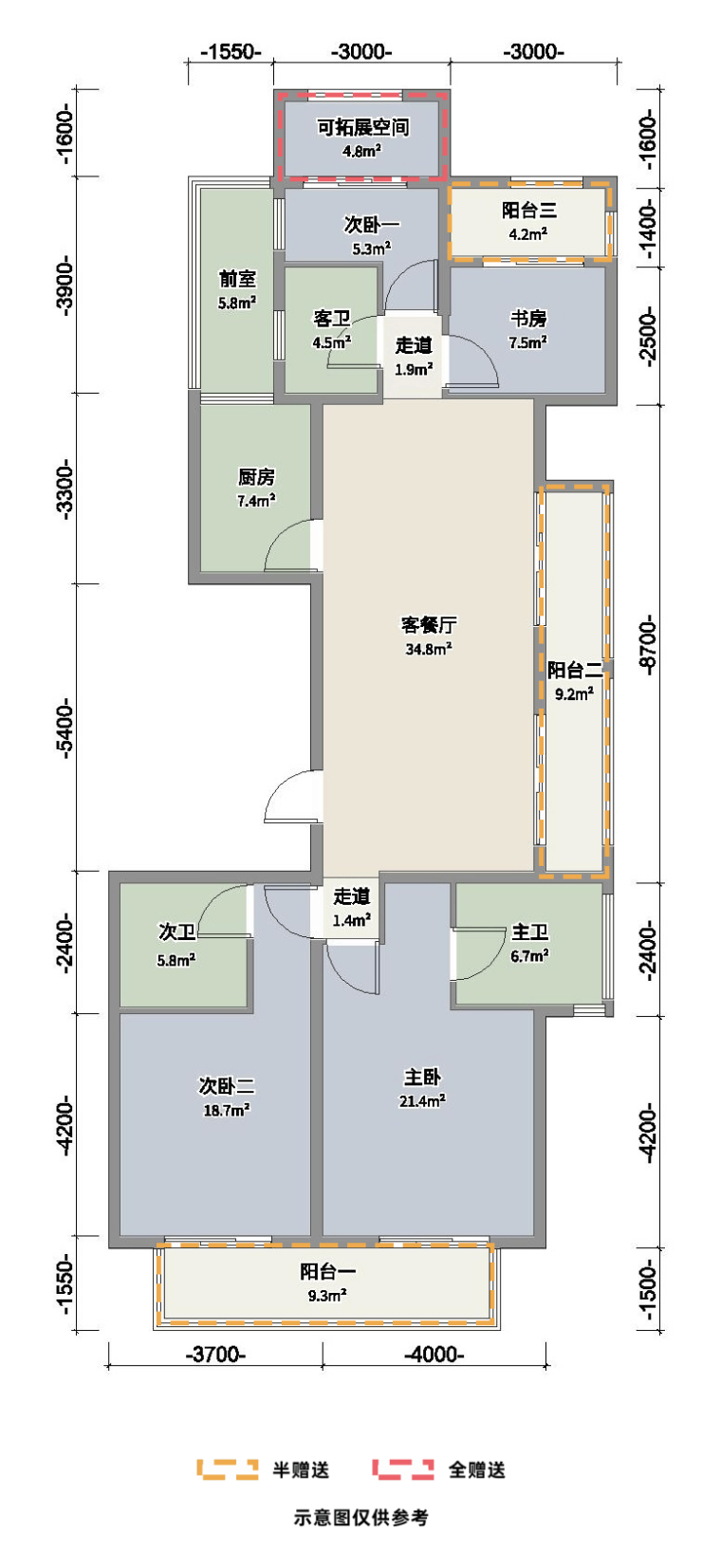 1. 户型优势:以约131㎡户型为例,可以做到四房两卫,3开间朝南+南向双阳台,空间布局合理,居住舒适度高。