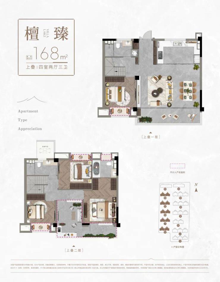 (3#5#7#9#11#13#小叠)上叠建面:168平,四房两厅三卫(送13.5平露台)