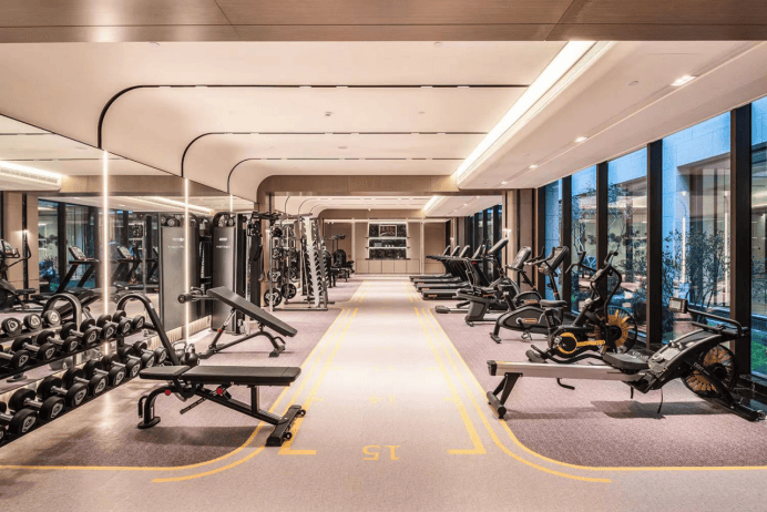 西湖国际高尔夫球场:北侧4000亩亚运级球场,绿意绵延,晨跑夜行皆可享山野之趣。
