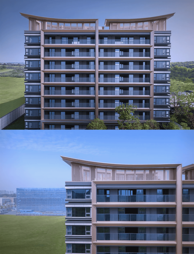 设计:采用“无界东方美学”理念,高窗墙比铝板立面,借鉴苏州留园园林布局。